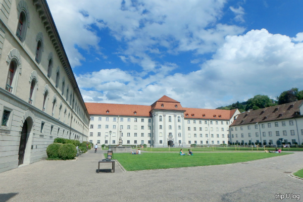 「St. Laurenzen」の前から「St. Gallen Cathedral」の方角。