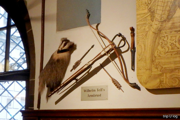 ヴィルヘルム・テル(Wilhelm Tell)のクロスボウも飾ってあります。