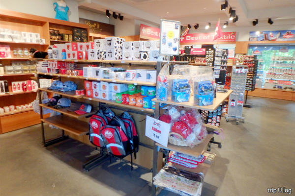 お土産屋さんの並びに、チケット屋さん、時計屋さん、軽食屋さん、などがあります。