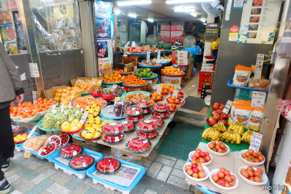 伝統市場は韓国らしい店舗が1本道沿いに並んでいますが、