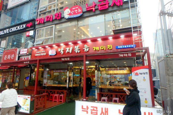 釜山名物のひとつ「ナッコプセ」(手長タコ・ホルモン・エビを唐辛子味噌やニンニクで炒めた料理)を食べに来ました!