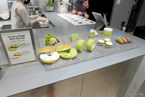 済州島の抹茶(₩7,000)・済州島の抹茶3種類飲み比べ(₩15,000)・緑茶・ブレンド茶・ハーブティー飲み比べ(₩15,000)・抹茶ベーグル(₩5,000)・etc…