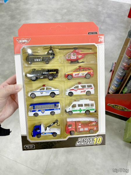 甥っ子へのお土産に、各国のミニカー(主にパト救急消防車)を探して行きました。