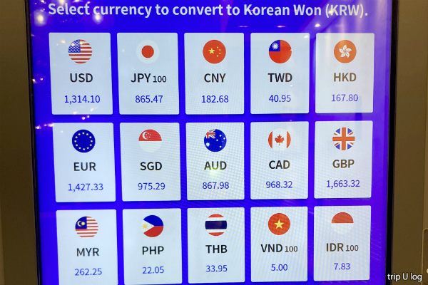 この日のレートは、¥1=₩8.9(₩1=¥0.115 )