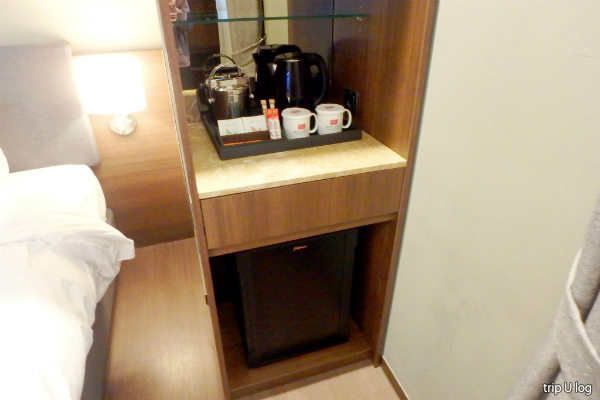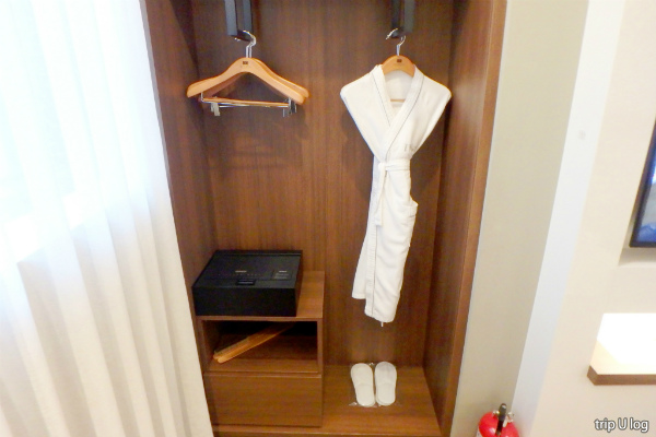 部屋には、バスローブ2枚・ハンガー7本・使い捨てスリッパ2足・靴用?服用?ブラシ・靴ベラ・金庫・冷蔵庫・アイスペール(氷入れ容器)・ケトル・カップ2個・マドラー2本がありました。
