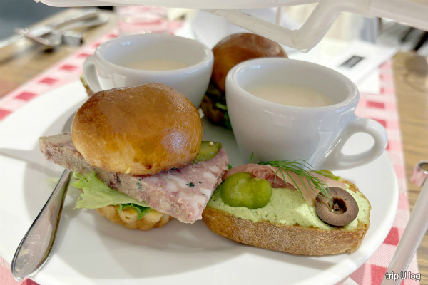 バーガーのパンはふわふわ、タルティーヌのバゲットはサクサク、ミルフィーユはパリパリ、マカロンはねっとり、全部おいしかったので最高。
