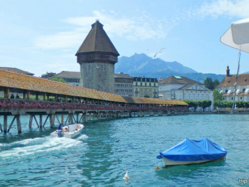 Switzerland / スイス 【Luzern】街並みと橋といろいろ<スカンディナヴィア一人旅とスイスでホームステイ> 青い空、白い雲、黒い鳥、青い河、歴史的木橋、赤色桃色白色の花ァ! 2025.10.03 Switzerland / スイス